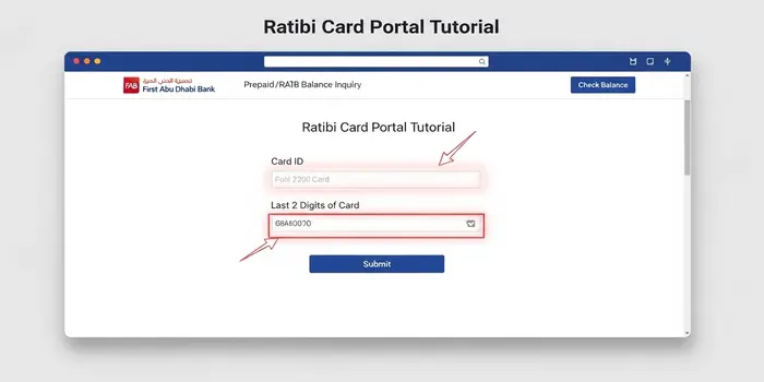 You can check your Ratibi balance without the app by visiting the official FAB Prepaid Card Portal (PPC). Simply enter your Card ID and the last two digits of your card. Alternatively, you can use any FAB ATM or call the Ratibi helpline at 600 52 2298.